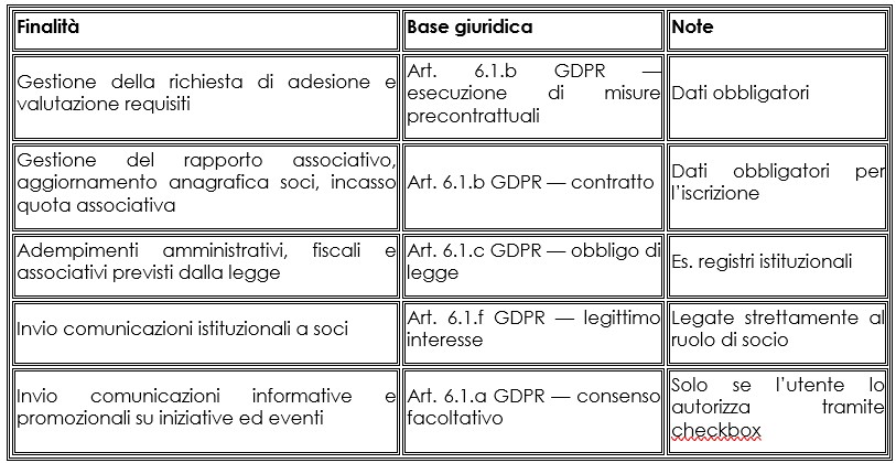trattati i dati necessari alla gestione della richiesta di adesione, tra cui: